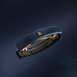 “Iedvesmojoties no skaidras, zvaigžņotas nakts mirdzuma, ādas matu sprādze “Cosmic Sapphire” krāsā piešķirs jūsu matiem debesu šarmu. Izgatavota no mīkstas, safīra zilas Napa ādas ar glītām nošuvēm, tā ir dekorēta ar 18K apzeltītu Balmain B logotipu, kas mirdz kā tāla zvaigzne.